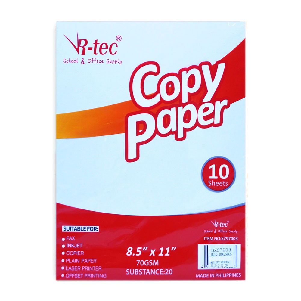 COPY BOND PAPER (RTEC - 10 SHEETS - SIZE SHORT) | Shopee ...
